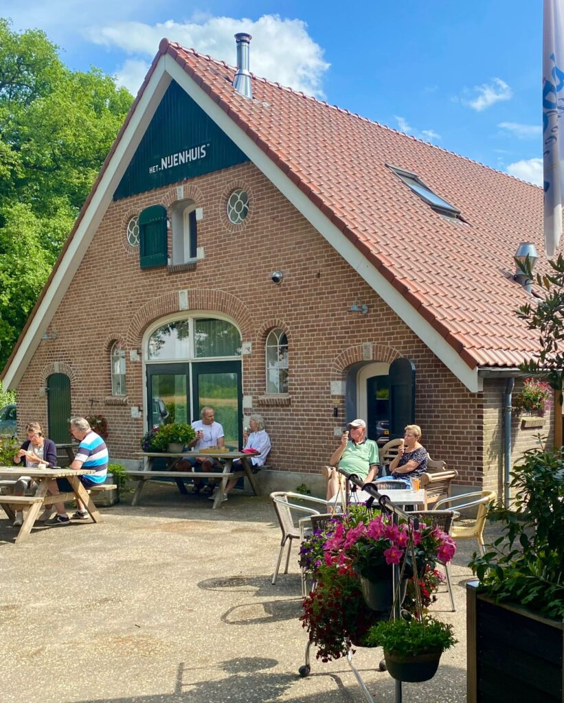 Bezoek ons zonnig terras voor vers gemalen Hesselink koffie, opgelost en lekkernijen. Wij serveren cappuccino’s, latte macchiato’s, vruchtensappen en lokale (speciaal)bieren en wijnen. Voor de zoete kauwen bieden wij softijs, boeren magnums en waterijsjes – mis onze ijscoupe met verse aardbeien en slagroom niet! Kinderen kunnen zich vermaken met traptrekkers en skelters.