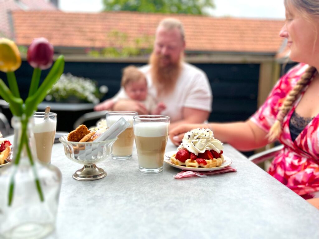 Geniet van een verse wafel met aardbeien en slagroom op ons terras!